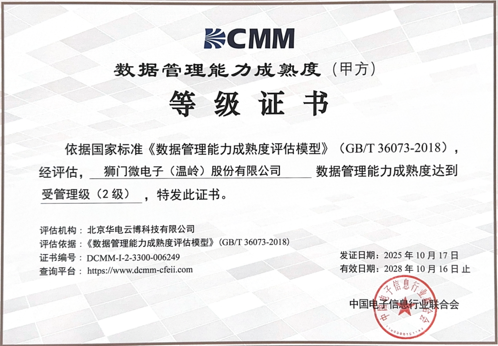 狮门微电子通过 DCMM 二级认证