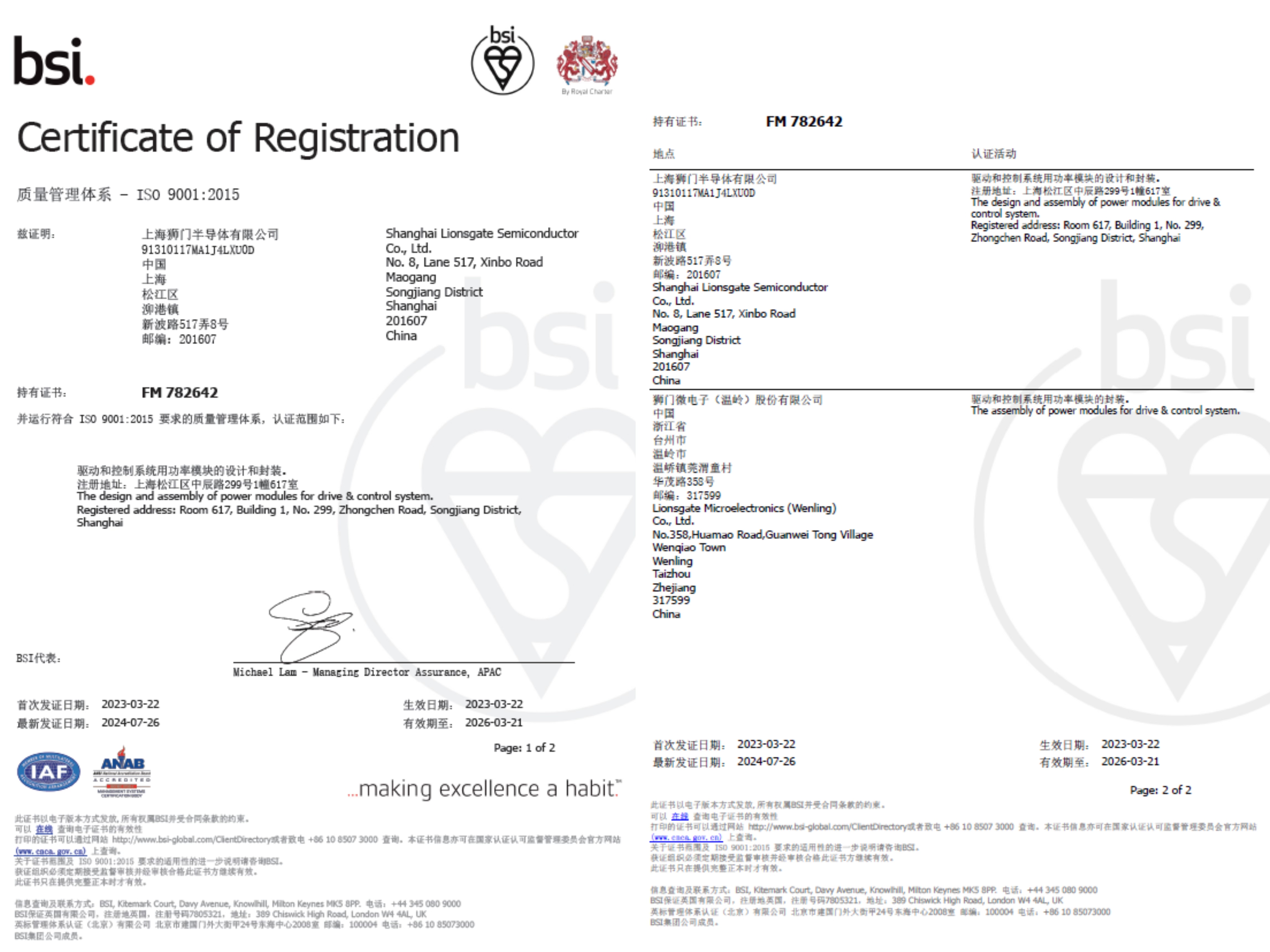 狮门半导体通过 ISO9001 质量体系认证 -