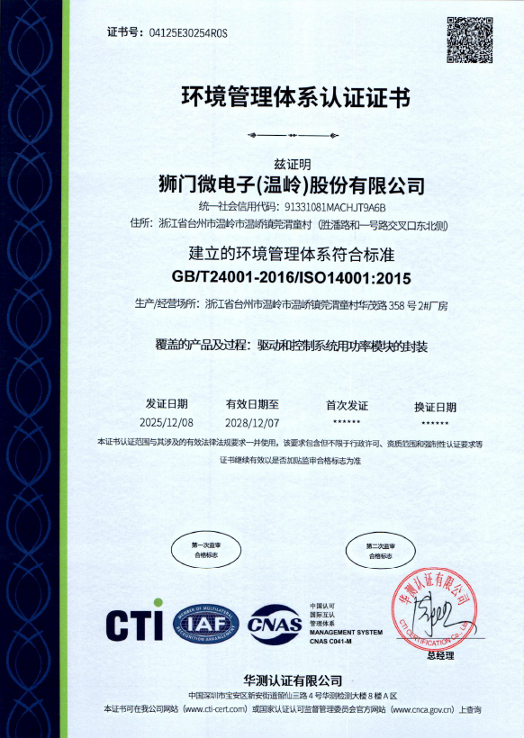 浙江温岭基地(狮门微电子)实现批量生产