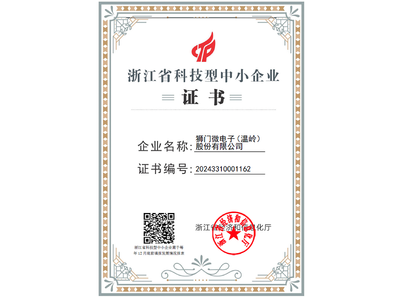 Lionsgate Microelectronics was recognized as Small & Medium-sized Technology-based Enterprise in ZheJiang province.