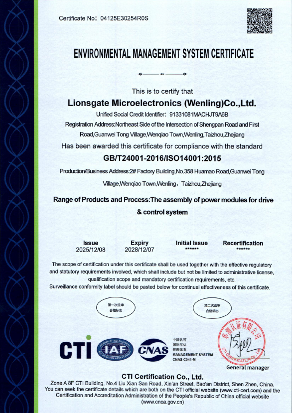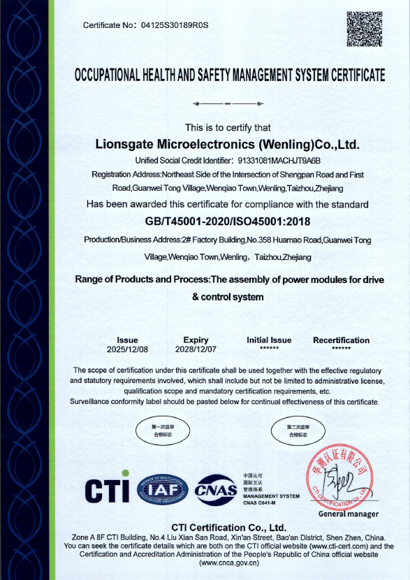 Lionsgate Semi was certificated by IATF 16949.